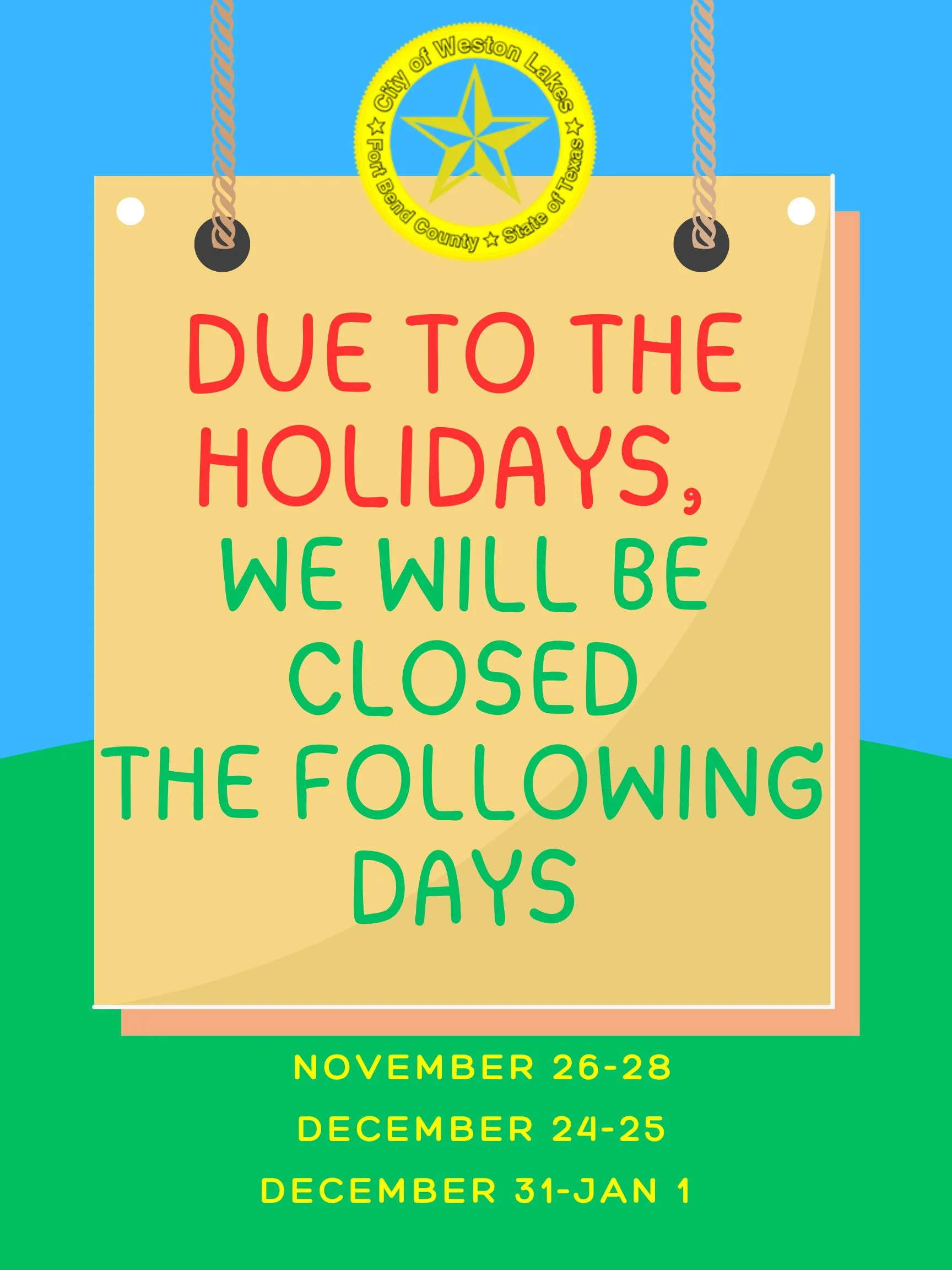 We will also be closed Wednesday, December 31… We will reopen Monday, January 5th!